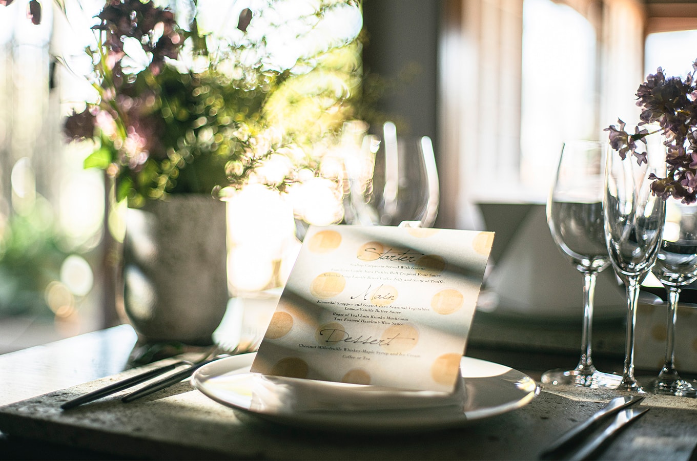 日本の土地で育まれた伝統的な食材や古くから伝わる調理法・調味料を重んじながらも、華やかなフレンチと組み合わせたフレンチ・ジャポネ。馴染み深い和の食材、それでいて新鮮な驚きと発見に満ちた料理の数々。特別な日だからこそ、おもてなしの最たるもの” 料理” を記憶に刻んでいただきたい。日本の食文化に敬意をはらい、トラディショナルでモダンなクラシカならではの世界観をご堪能ください。