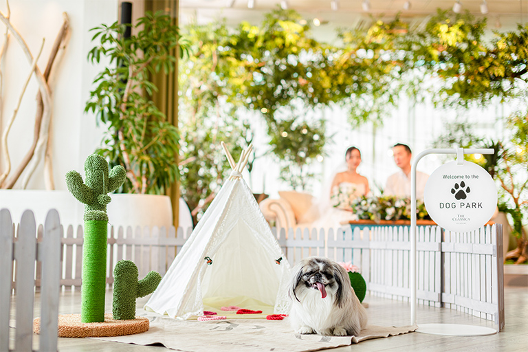 ゲストも自然と笑顔になる“ペットがいるからこそ”の演出が人気です。