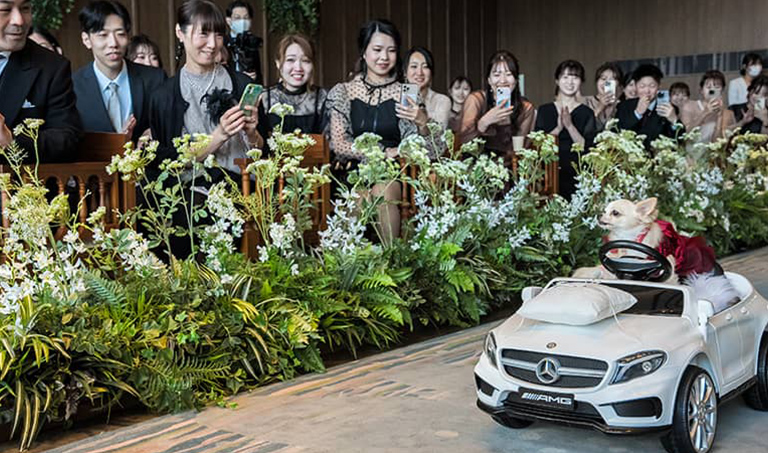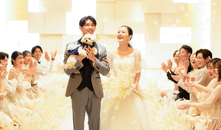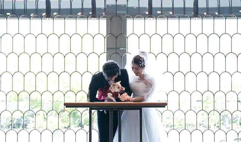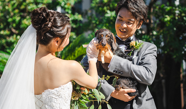チャペルでは、ペットも大切な家族の一員として挙式に参加。