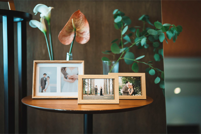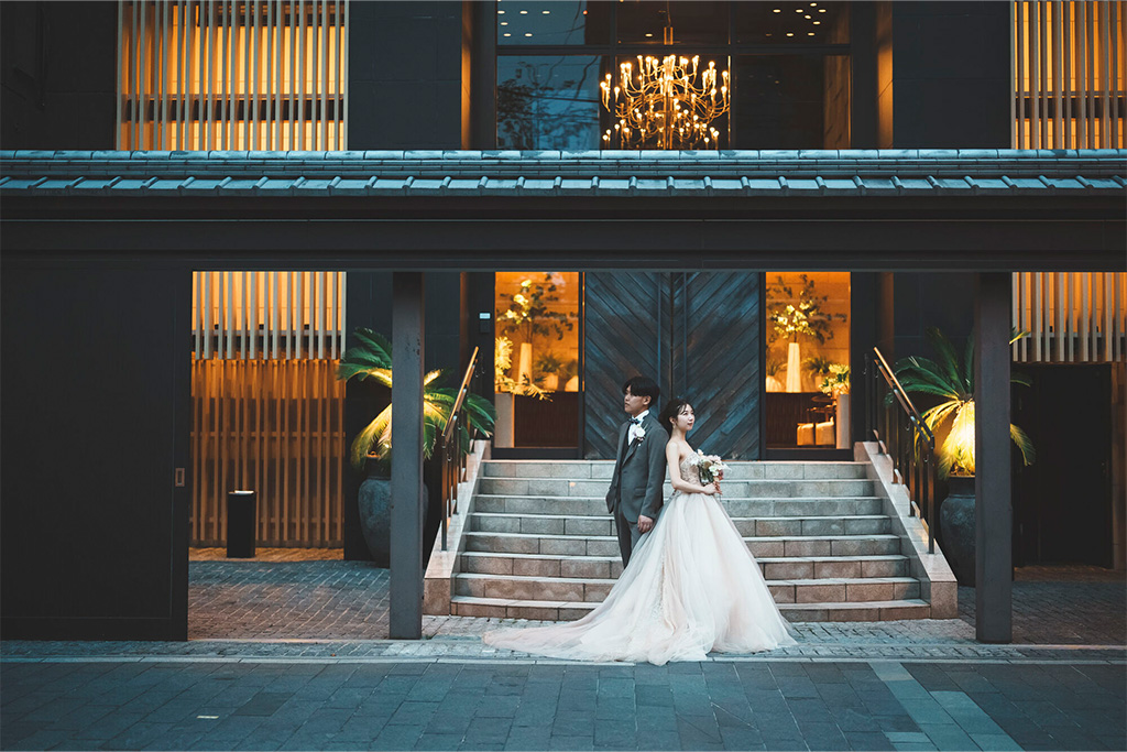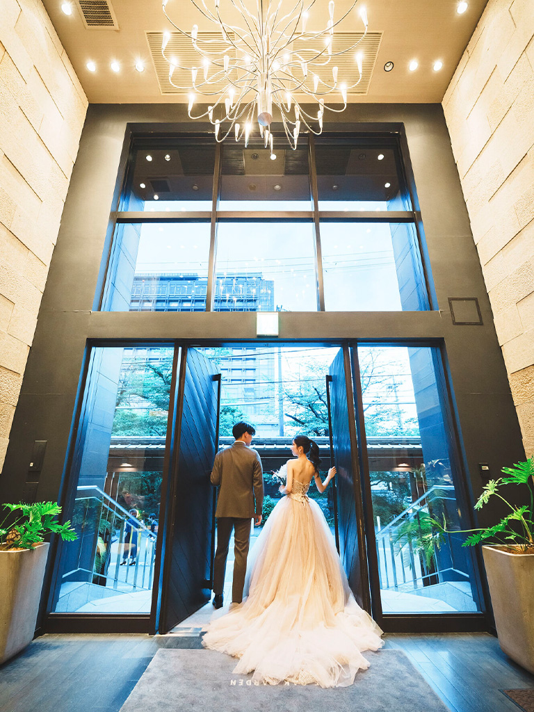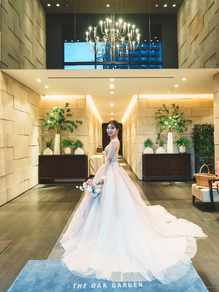 吹き抜けに輝くシャンデリアの空間は、上質で美しい写真を残していただけます。
