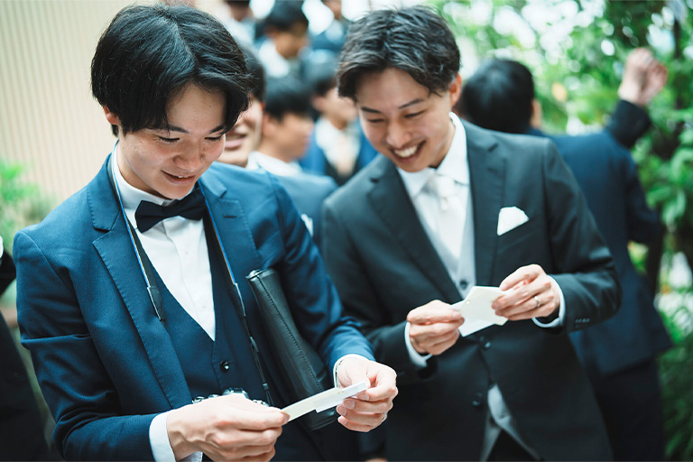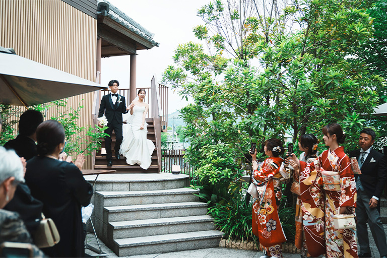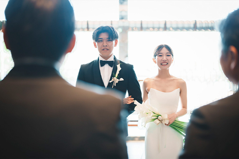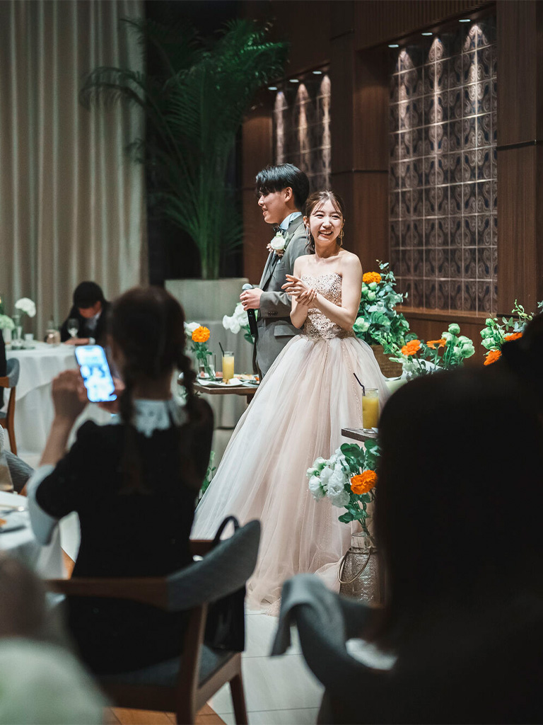 扉が開きゲストの顔が見えた瞬間、おふたりの表情も笑顔に。