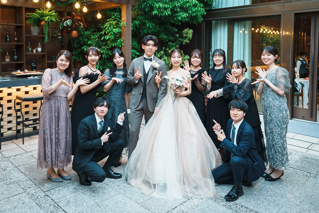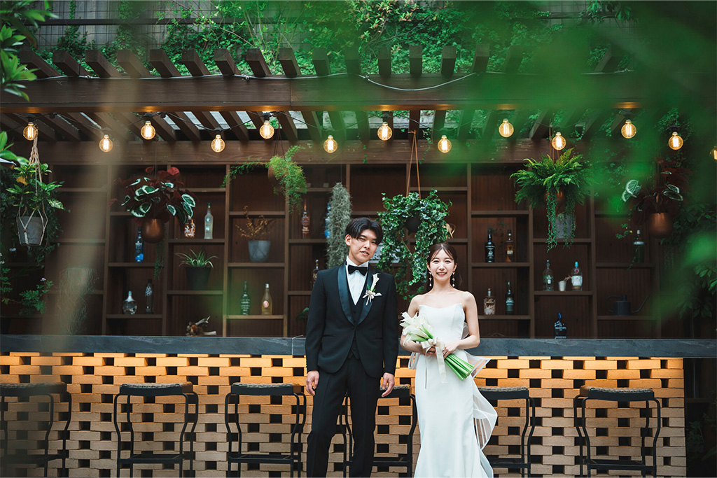 緑が溢れるガーデンでゲストとの写真撮影のお時間を過ごされていました。