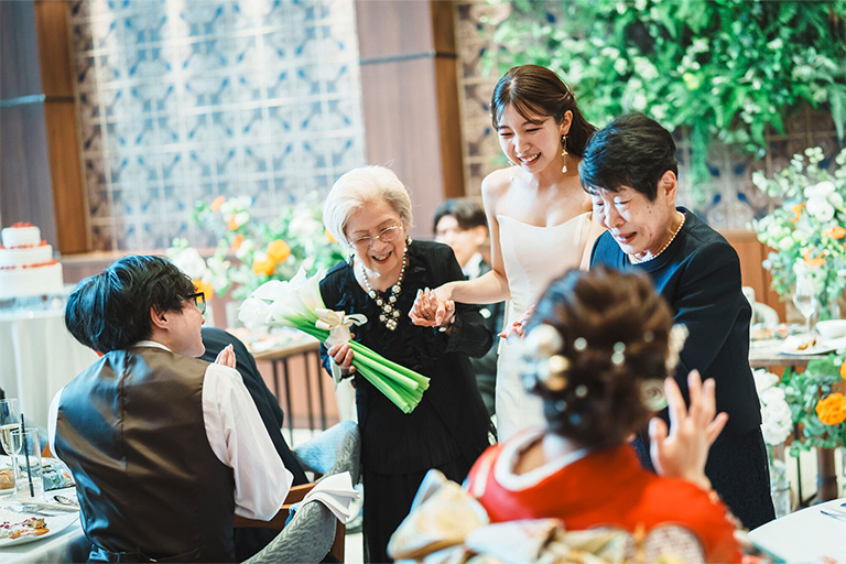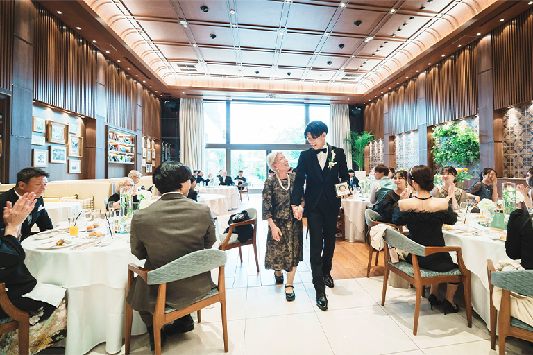 中座のエスコートは大好きなご親族を選ばれ、会場内が感動的で和やかな雰囲気となりました。