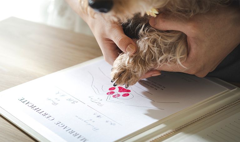 当館オリジナルペット婚用結婚証明書や肉球スタンプ、
