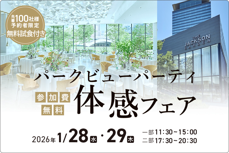 グラングリーン内にある会議スペース「JAM BASE」にて入学式・講演会などの催事利用後に「THE JACKSON GARDEN」での食事会・懇親会を開催できる期間限定のプランがスタート!