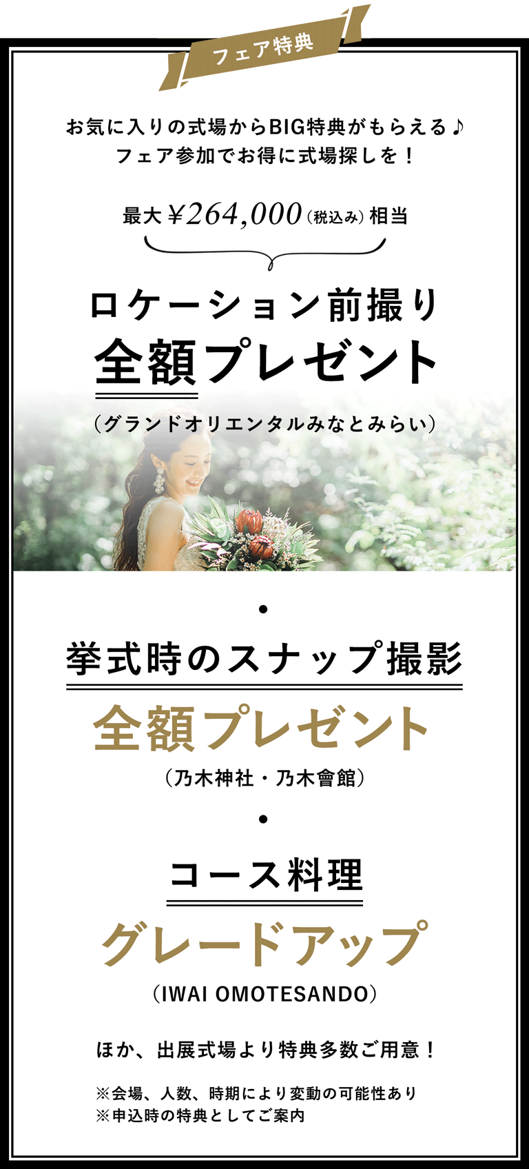 ウエディングフォトにこだわりたい方にもおすすめのフェアです。