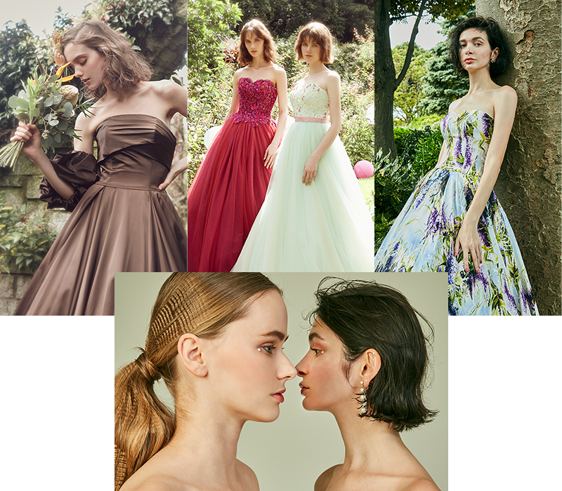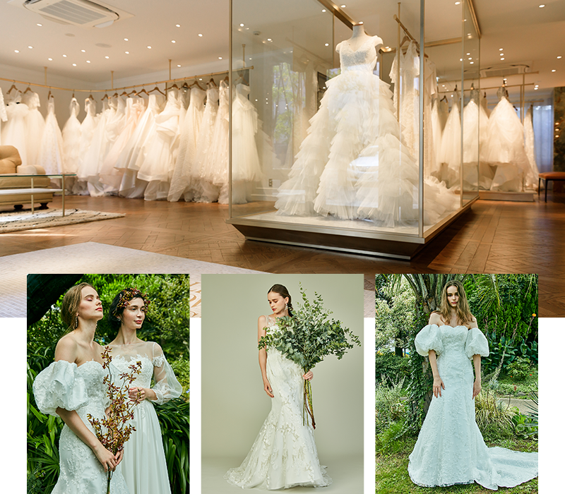 全100着以上のウエディングドレス展示のほか、アクセサリーやブライダルシューズ、カラードレスもお楽しみください。手に取ってあわせて見れるので、まさに花嫁を疑似体験できる内容に。