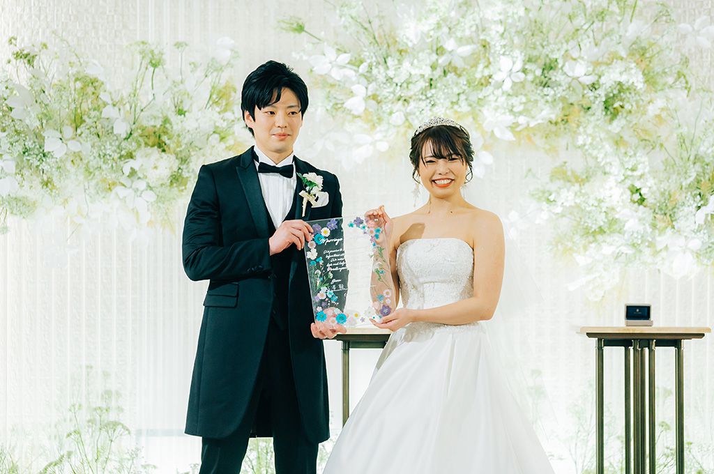 「和やかに過ごせるウエディングにしたい」とご家族・ご親族様と、近しいご友人様をご招待するアットホームなお顔触れで過ごすウエディングをご希望していたおふたり。