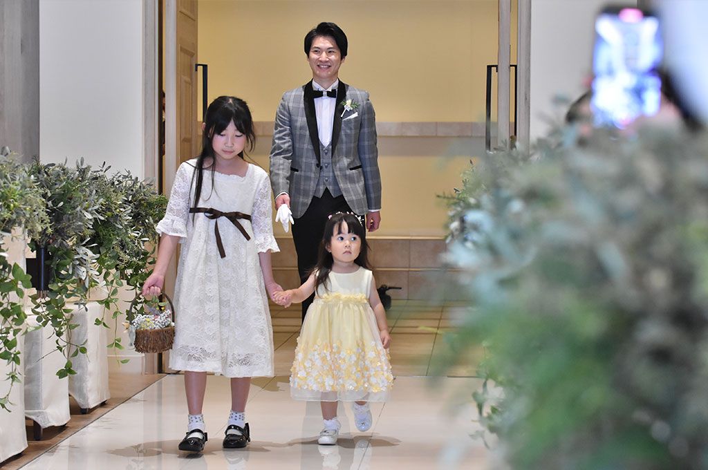 挙式では、リングガールとして姪っ子ちゃんがご新郎様を先導して入場!