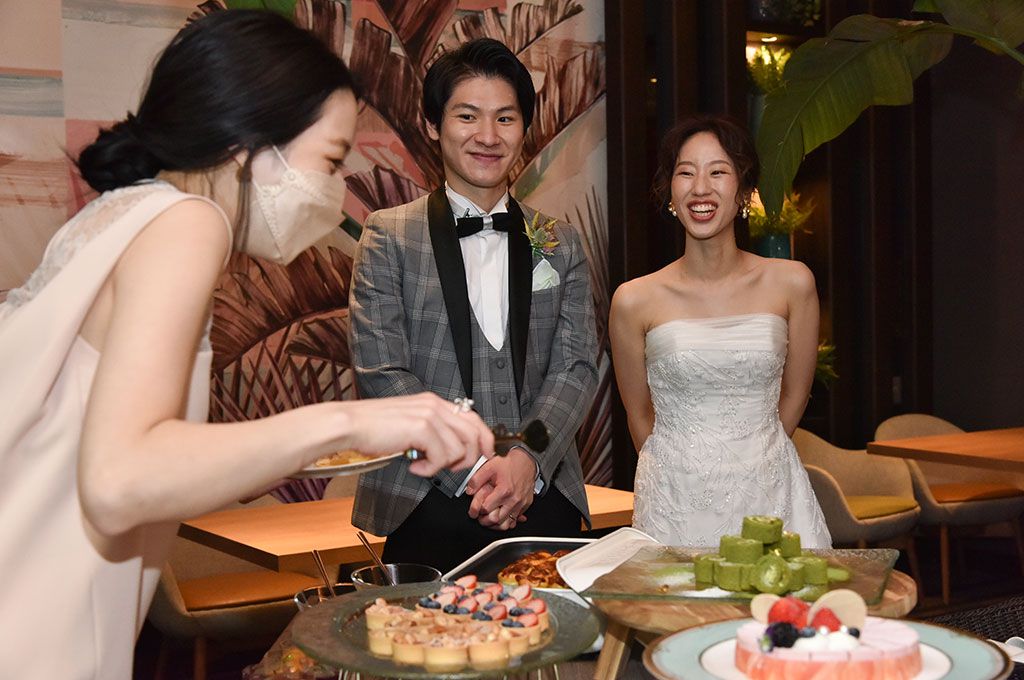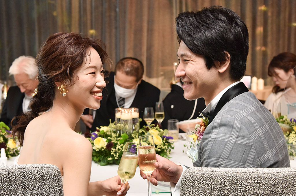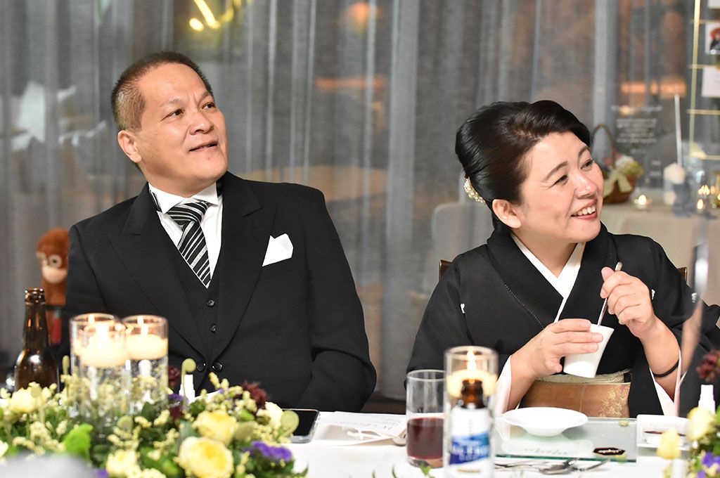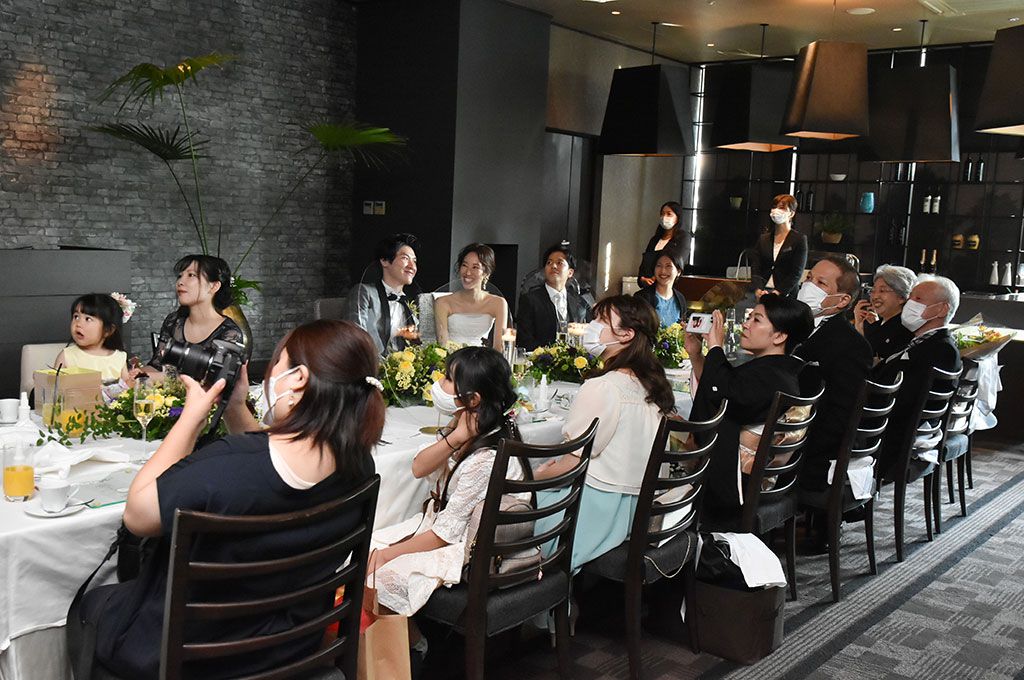 披露宴は、親しい家族や親族に囲まれた少人数パーティ。
