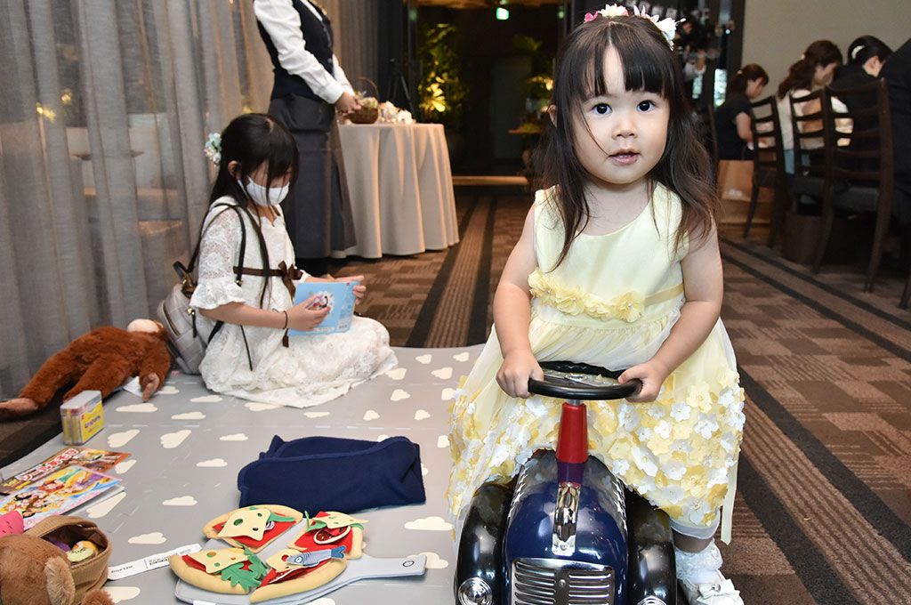 会場内にキッズスペースを設けたり、テラスで家族写真を撮ったりと、貸切スペースを存分に活かし、