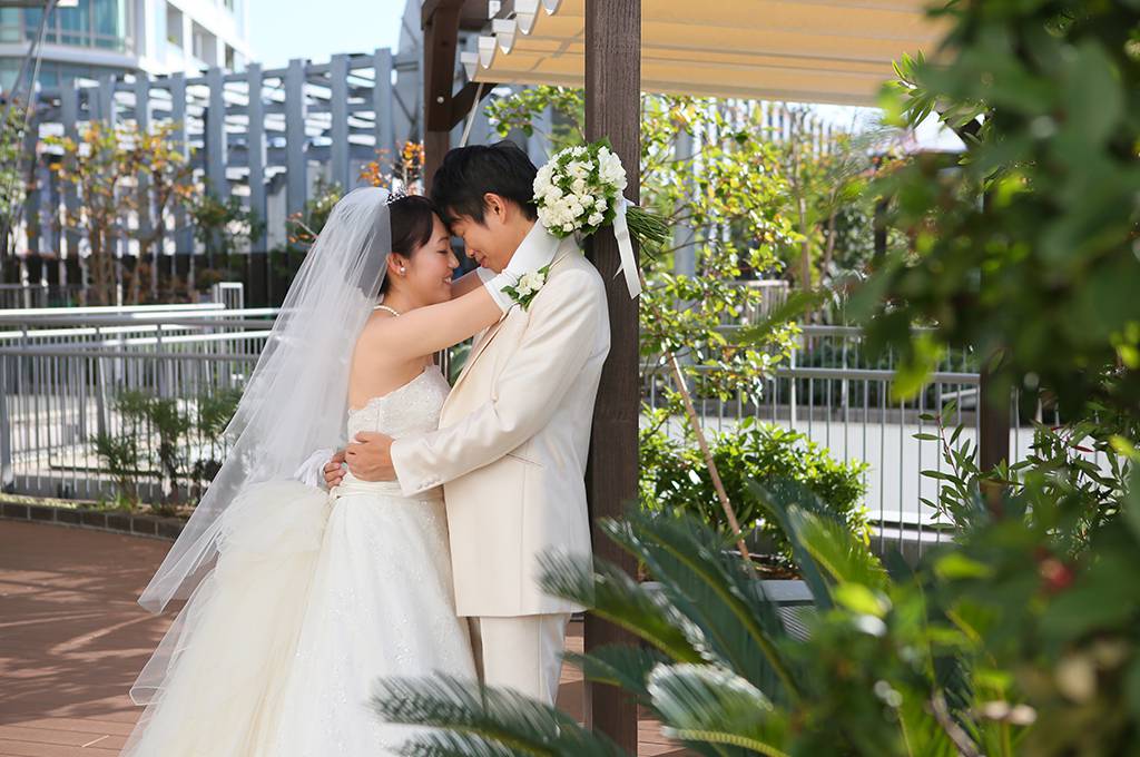 自然に囲まれた心地よさを知っているおふたりだからこそ、陽光と緑に囲まれたベイガーデンでのロケーション撮影 も、とっても素敵に撮影されていました!