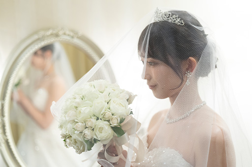 繊細な刺繍が施されたドレスと輝くティアラは、気品ある美しさで会場の雰囲気にとてもお似合いでした。