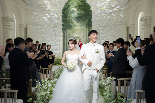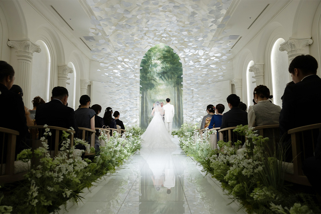 ゲストのあたたかなまなざしに見守られながら進むその一歩一歩が、上質な美しさに満ちた時間を紡いでいきました。