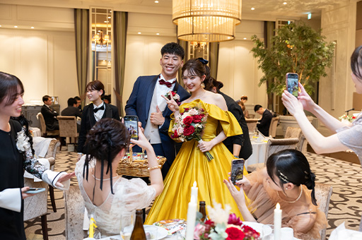 披露宴後半は、イエロードレスに身を包んでの再入場。