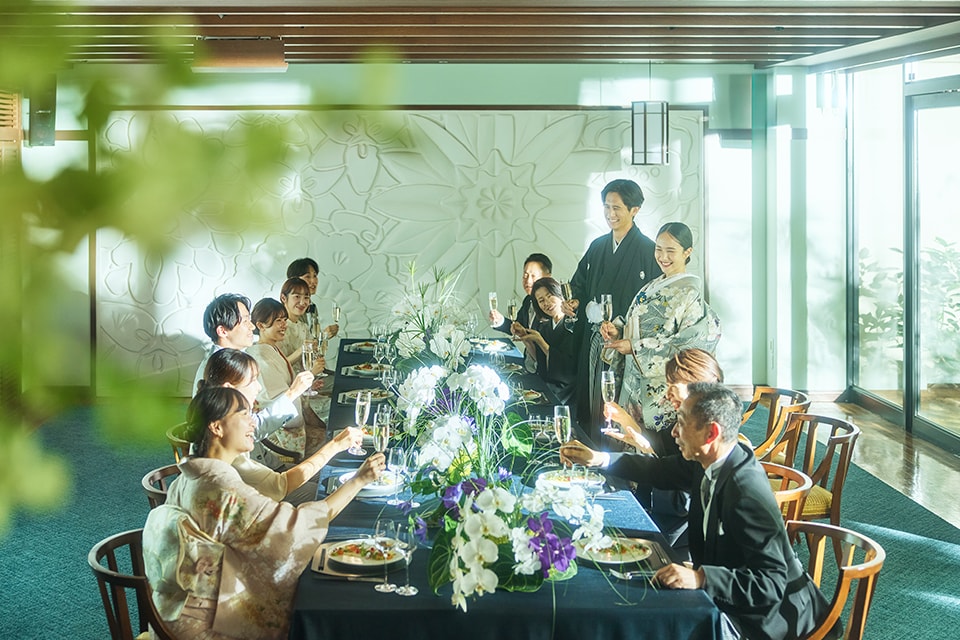 茶の湯に倣う「もてなし」と「しつらい」の美学を感じるパーティルーム。
