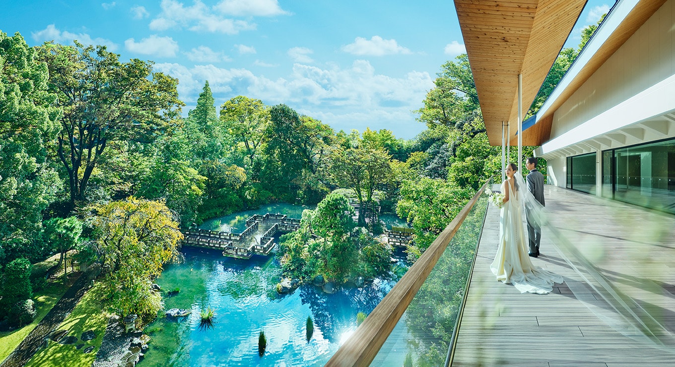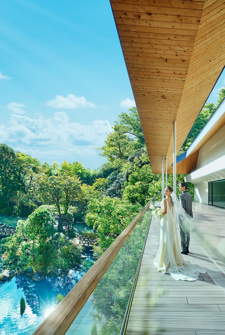 都心でありながら自然と静寂が包む一万坪の日本庭園を望む大きなルーフトップ。