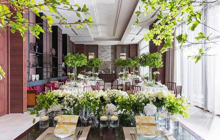 会場は大観覧車を望むプール付テラスと会場をボーダレスに愉しむ、落ち着いた雰囲気の会場「ディープブルー」。