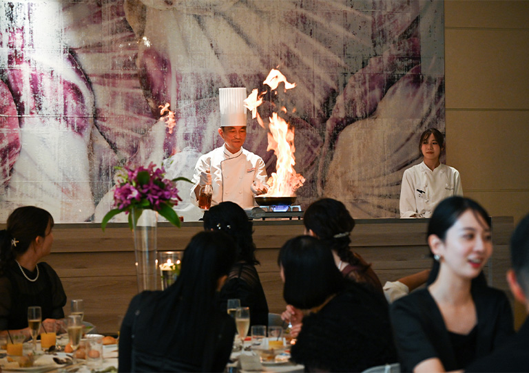 続いて始まったのは、シェフによるライブ感あふれる料理演出。