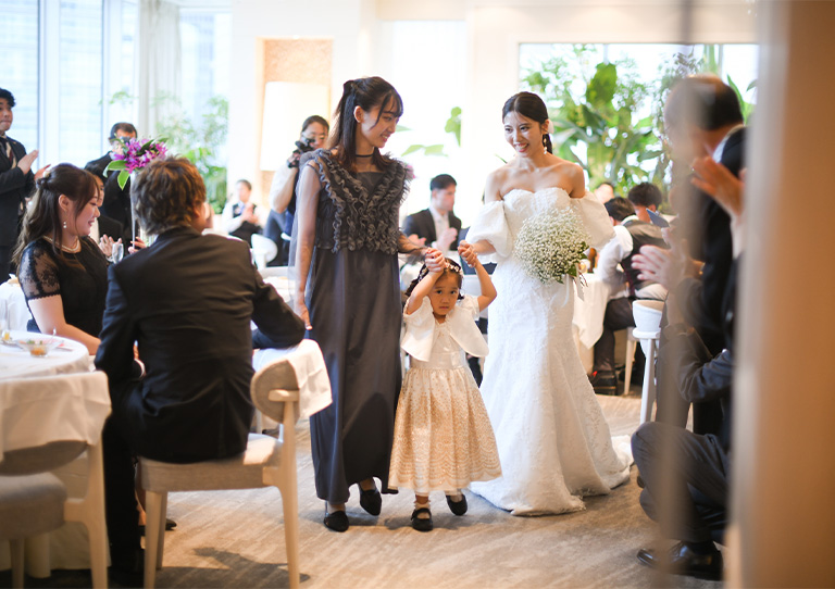 姪っ子様がリングガールで登場されるなど、ゲストと一緒に楽しめる演出を挙式中にご用意。