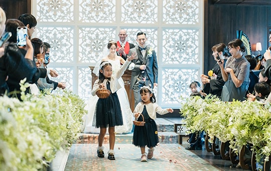 可愛いフラワーガールの登場は会場全体が和やかな雰囲気に。