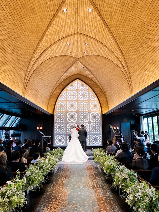 自然光が溢れるサウンドホールでの挙式は、温かな拍手と笑顔に包まれた感動的な時間となりました。