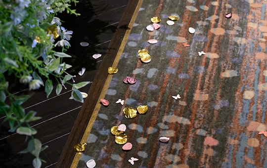 圧巻のスケール感と高級感ある雰囲気に、ゴールドのコーディネートを。