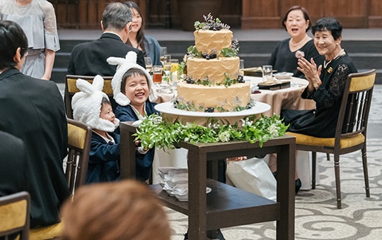 こだわったウエディングケーキは、甥っ子さんたちがウサギになって登場され会場も大盛り上がり。