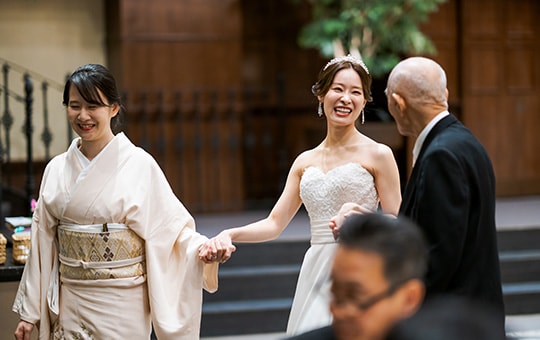 新婦様の中座のエスコートは大好きなお姉様とおじい様と一緒に。