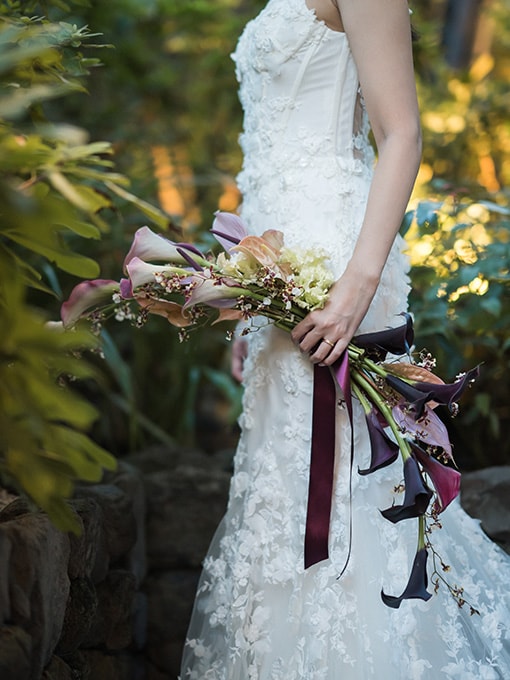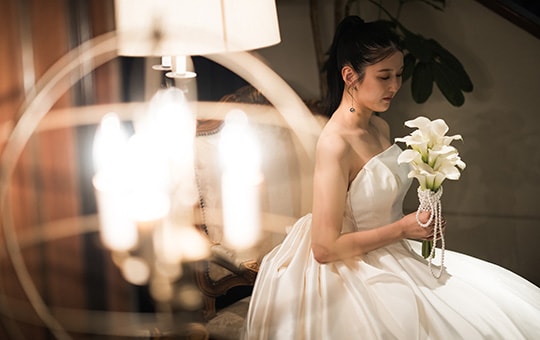 お色直しで選ばれたのは、繊細なレースと立体感のある刺繍が施されたインポートドレス。