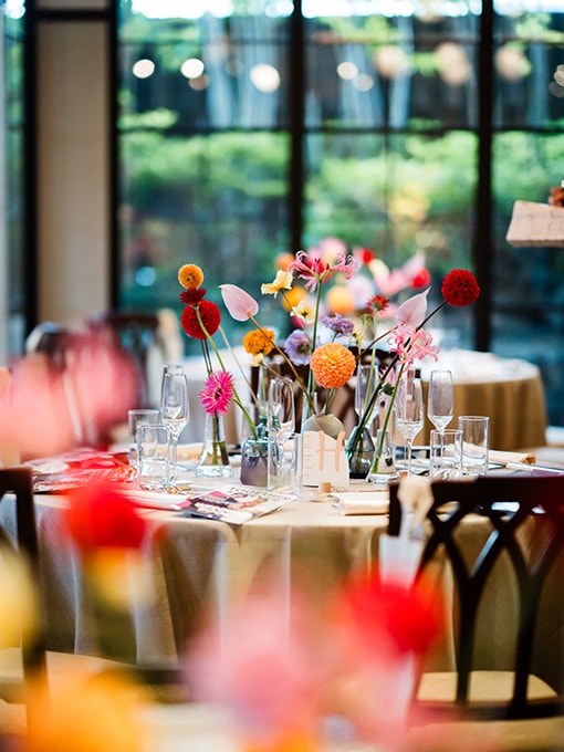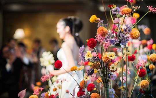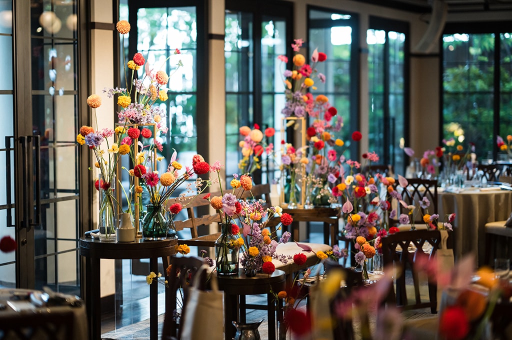 会場を彩ったのは、空間に華やかさを生むカラフルなフラワーコーディネート。