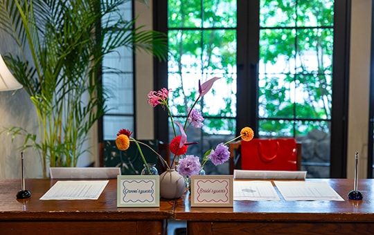 緑が溢れ上質な木目調の会場に、上質な華やかさを演出されました。