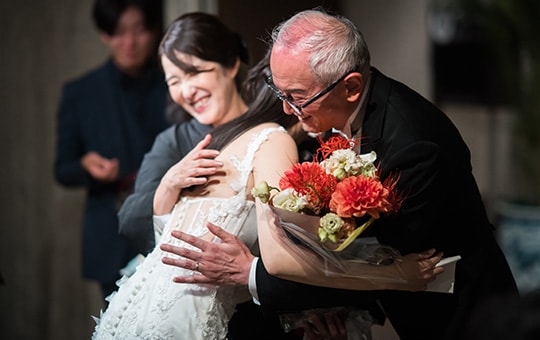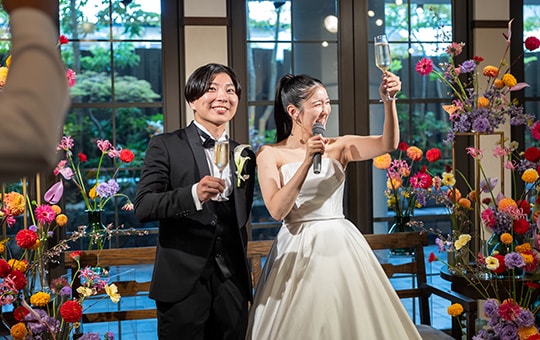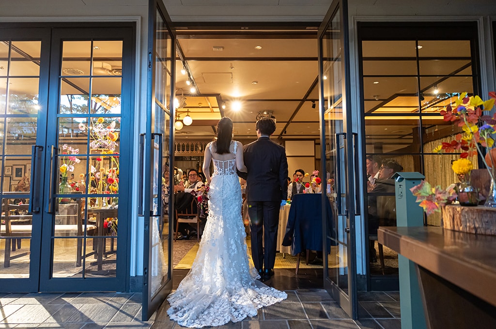 入場や乾杯のひとつひとつに、ゲストと過ごす時間を大切にされるおふたり。