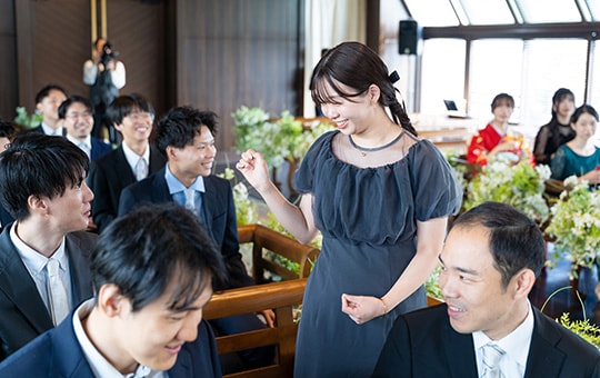披露宴はご友人のみを招き、和やかな雰囲気の中でスタート。