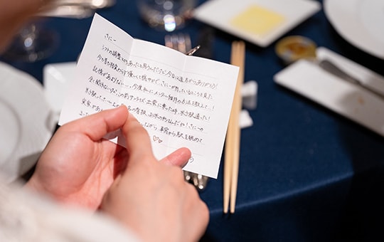 再入場を前に、ゲスト一人ひとりへ贈られた手紙。