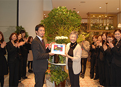 昨年のクリスマスシーズンに行いました当社のチャリティ活動に対して、国際ボランティア団体「メイク・ア・ウィッシュ・オブ・ジャパン」事務局長の大野様より感謝状を授与していただきました。