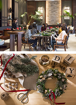 LIVE LOVE LAUGHフラワーのフラワーコーディネーターを迎え、クリスマスを彩るオリジナルのリースをつくりました。