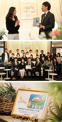 INFORMATION最新情報 2017.01.18 「メイク・ア・ウィッシュ・オブ・ジャパン」より感謝状を授与いただきました 昨年のクリスマスシーズンに行いました当社のチャリティ活動に対して、国際ボランティア団体「メイク・ア・ウィッシュ・オブ・ジャパン」事務局より感謝状を授与していただきました。 改めまして、活動の意義を感じると共に、この世界に多くの笑顔を生み出す活動として「幸せを生み出す企業"ブライダルプロデュース"ができる支援活動」を今後も取り組んでまいります。 一覧へ戻る