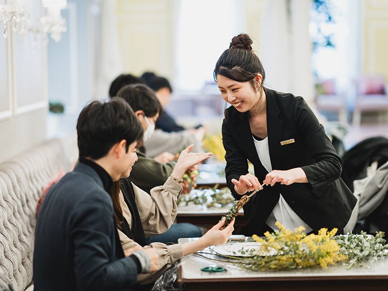 - レッスンでは、生の針葉樹やドライフラワー、接着剤などを使用するため、汚れても問題のないお召し物でお越しください。