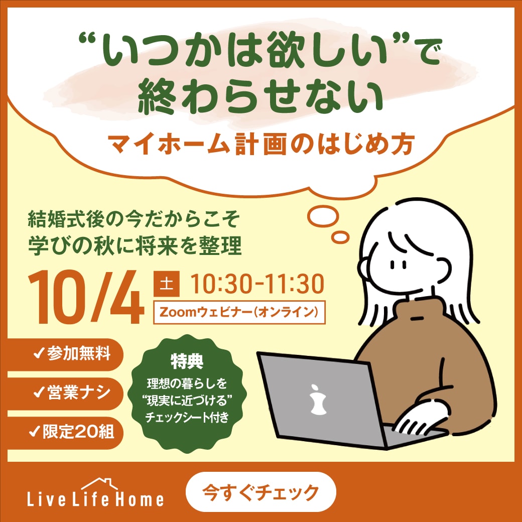 ご予約完了時に届くLINEまたはメールにzoom(ウェビナー)のURLが記載されています。 お手元に届かない場合は、お手数ですが、「info@livelifehome.co.jp]までご連絡ください。 |