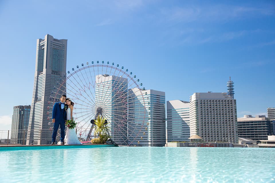 グランドオリエンタルみなとみらいでは人気のルーフトップで当日では撮影できないアングルでのダイナミックな撮影をすることが可能です。